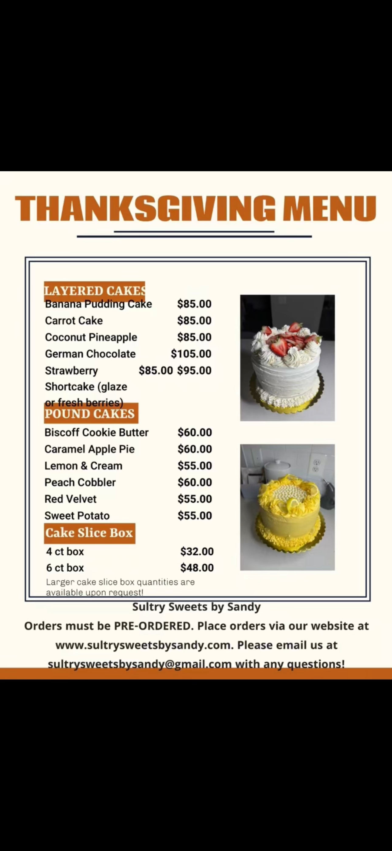 Check out our Thanksgiving Menu Check out our Thanksgiving Menu Check out our Thanksgiving Menu What should we know about this product? How is it made, how much does it cost, what color and size is it? Better descriptions result in more sales. Shop